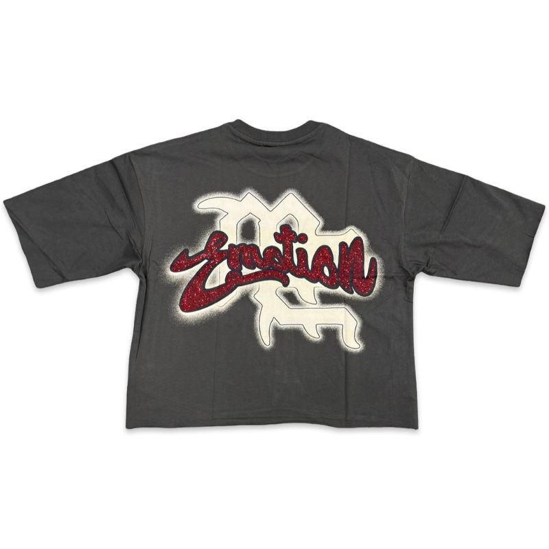 Mixed Emotion Rhinestone Cropped Tee Grey